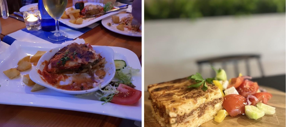 I recommend the meze platter for a variety of flavors, alongside the spanakopita for breakfast and the moussaka as a hearty main.